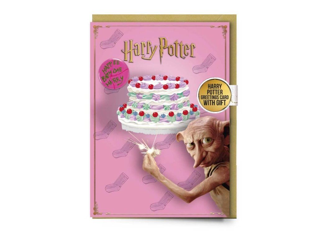 Áno - kombinácia Dobbyho a narodeninovej placky robí z tejto pohľadnice dokonalé narodeninové blahoželanie pre každého HP fanúšika.