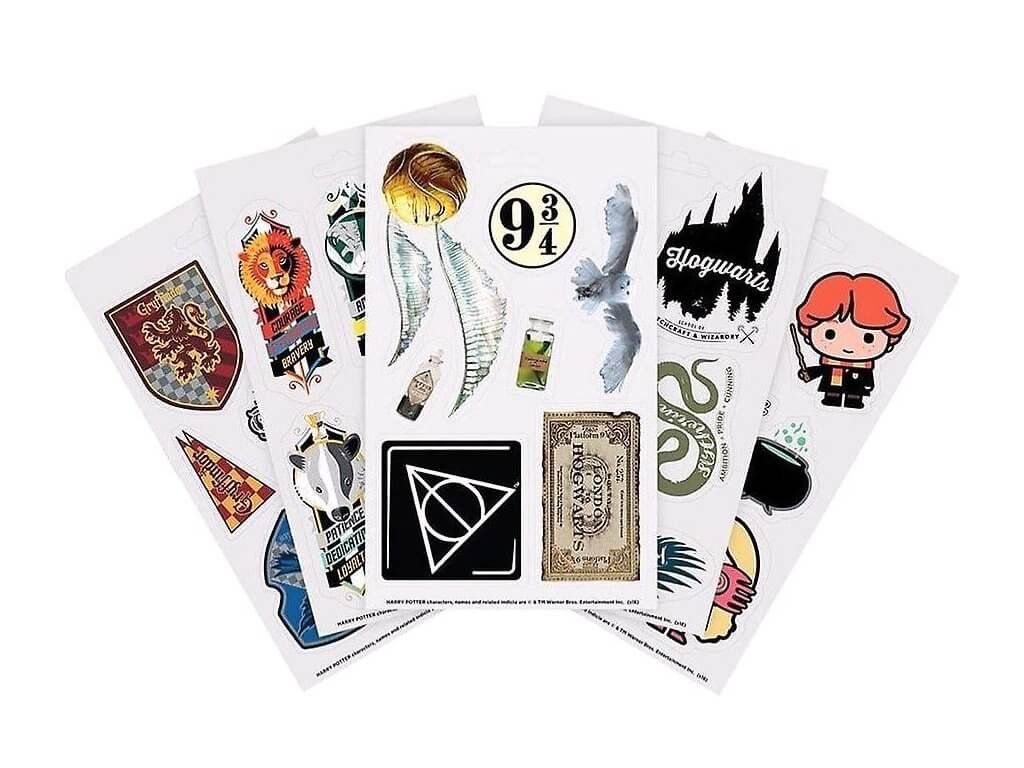 Hľadáte pekné samolepky do diára, na počítač, telefón alebo tablet? Ozdobte si čokoľvek vás napadne kúzelnými samolepkami zo sveta Harryho Pottera. Zlatá strela, sova Hedviga, Hermína Grangerová, Triediaci klobúk, Rokfortský erb, lístok na Rokfortský expres a mnohé ďalšie. 34 kusov, 5 hárkov, vinylové prevedenie.
